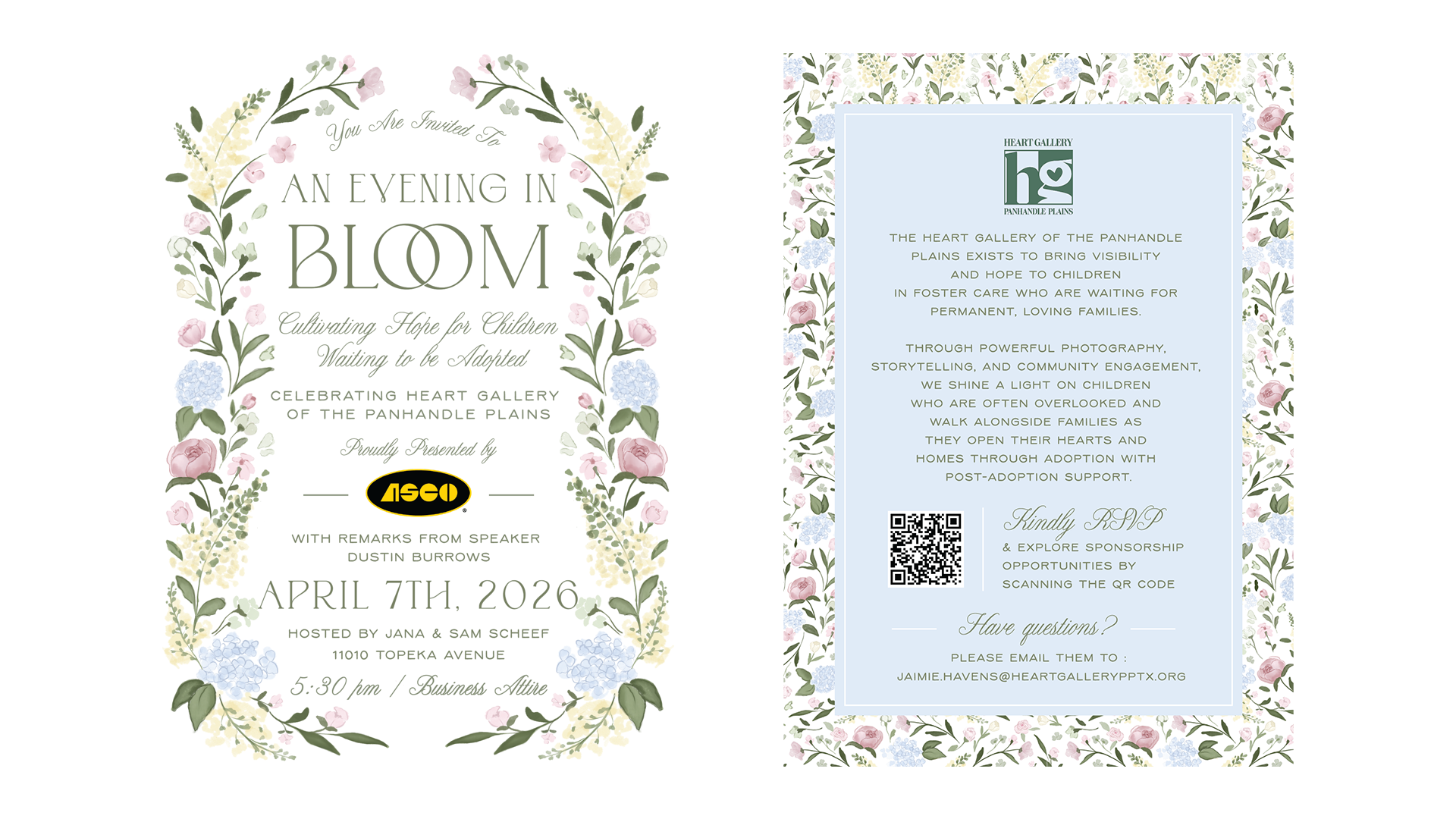 Join us for An Evening in Bloom, an intimate and uplifting spring fundraising experience benefiting the Heart Gallery of the Panhandle Plains. This elegant event brings together compassionate supporters and community champions to raise awareness and essential funds for children in foster care who are waiting for their forever families.